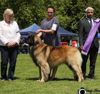 Troll arrived from Sweden in February 2008, and easily integrated into our family. A happy, lively boy with a loving. He absolutely adored the water, and wiould play all day. He started his show career with a Baby Puppy of Group, a Puppy of Group, a Junior in Show, and was Best in Show at the Leonberger Club Open Show in 2010. We loved him for his wonderfully happy personality. Thank you Maria for sending us this handsome boy. He had a long, happy life, and was very much loved.
